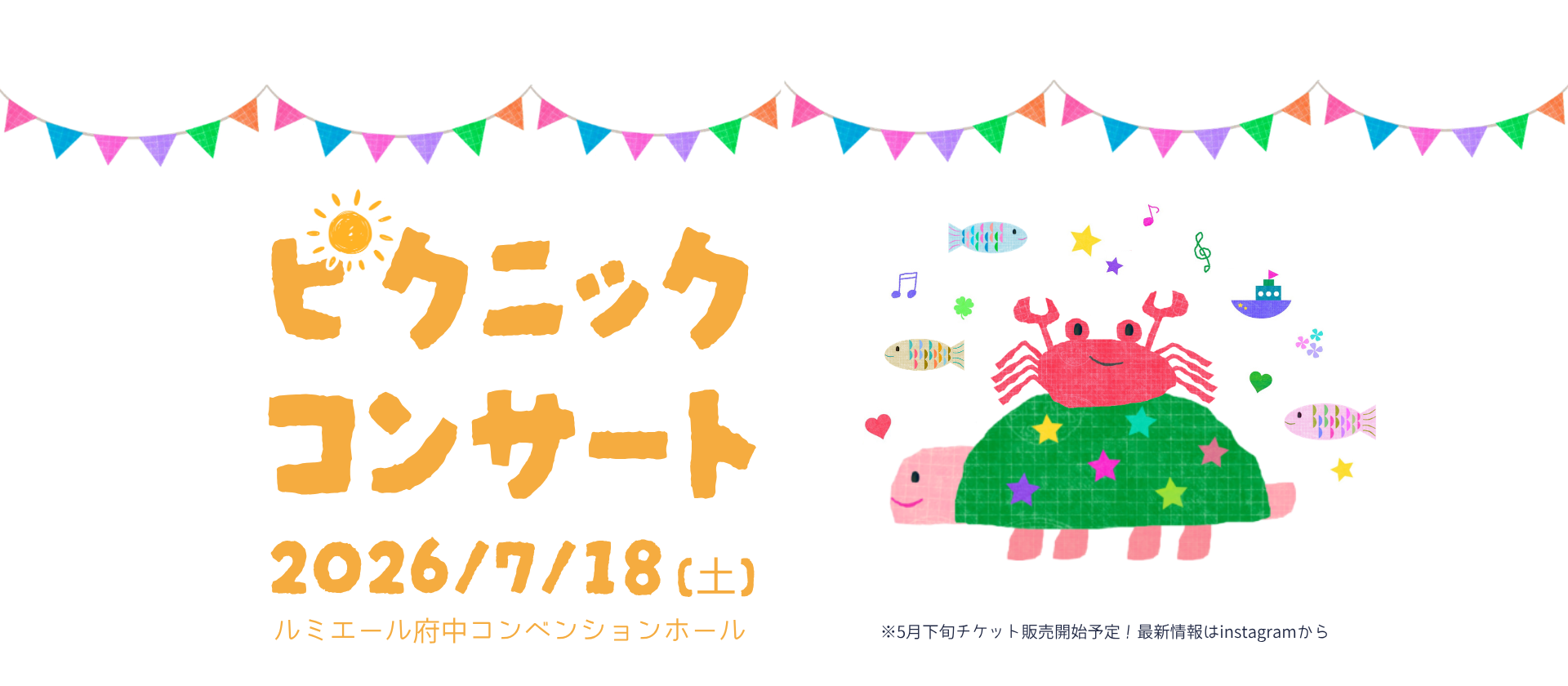 | コンサート内容 | ①人気キッズソング17曲生演奏 ※男女ボーカル+ピアノ+パーカッション ②スクリーン映像 |